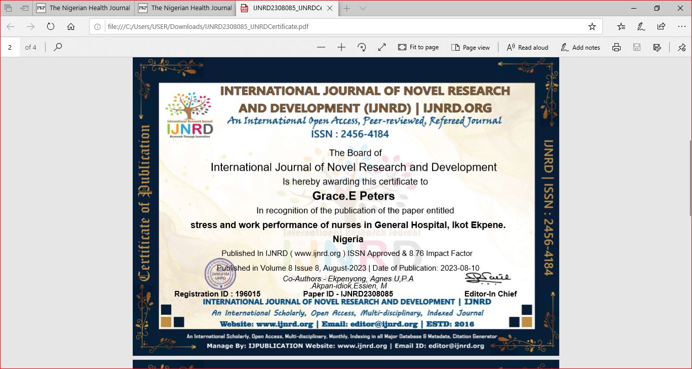 Stress and work performance of nurses in General Hospital, Ikot Ekpene, Nigeria.